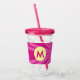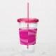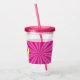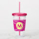 Tumbler de acrílico com listras de rosa quente irradiando por toda parte. Como uma enorme explosão solar rosa brilhante. Um pouco se assemelha a tie-dye, mas não é. Inclui um círculo amarelo muito pálido em um padrão fractal. Dentro do círculo reside uma inicial rosa. Você pode mudar ou personalizar a inicial para a sua ou para a pessoa a quem deseja dar o tumbler.