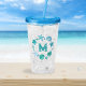 Copo De Acrílico Monograma do Oceano Costeiro com Costelas Azuis e