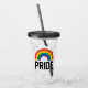 Este design apresenta a palavra orgulho sob um arco-íris colorido.