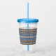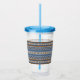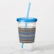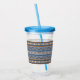 Copo De Acrílico Padrão Geométrico Azul e Marrom Estilo Sudoeste