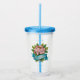 Stylish acrylic tumbler features a faux embroidered illustration of Mountain Laurel flowers with blue Pennsylvania sash. Personalize with name or monogram.