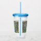 Ponha sua bebida fria favorita neste canalha acrílico que apresenta uma foto de um lindo Pavão azul com uma plumagem colorida de penas. Imagem impressa na frente e no verso. Selecione a tampa correspondente e a cor da palha.