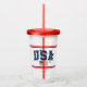 Show your Olympic support with every sip with this acrylic style tumbler shown in a red and blue USA print.