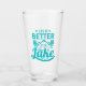 Pegue sua bebida favorita para o lago em um olhar clássico com um bebendo de cerveja/bebida fria, vidro, exibindo montanhas lindas e montanhas e pinheiros exuberantes, design transparente. Mostrando a citação da vida inspiradora "O Lago da Vida é Melhor em um texto moderno azul aquático". A vida é melhor no lago Glass é um presente legal para homens, mulheres, adolescentes ou jovens que amam barcos, acampar, esquiar a jato ou pescar no lago. Design de amante do lago ao ar livre perfeito para camper, barqueiro ou pescador. Se você ama acampar, barco ou peixe, esta design é para você.