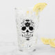 Este copo tem um tradicional design do crânio mexicano em preto e branco.
