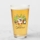 Um copo de design de Natal bonito, colorido, com um urso polar, pinguim e rato, todos com cachecóis e skates de gelo com árvores cobertas de neve e texto que diz É Natal!