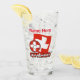 Vidro de bebendo personalizado mostra a bandeira quadrada vermelha e branca suíça atrás de uma bola de futebol contendo o motivo da bandeira. Sob ela, está a palavra SUIÇA, feita para se parecer com a bandeira, também. Apoie a SUIÇA TEAM em encontros e torneios internacionais de futebol. Divertida adição ao bar doméstico. Presente de inauguração do excelente. Pode ser divertido de usar em eventos de clubes desportivos.