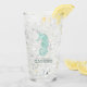 Este tumbler de vidro permite adicionar facilmente seu próprio nome e texto usando o modelo fornecido. A imagem simples do cavalo de mar é semitransparente, pelo que parece aqua azul-claro quando vazio, mas assumirá a cor sutil da sua bebida quando o copo estiver cheio. Procure ID623 para ver a coordenação de elementos à beira-mar e produtos adicionais com este design.