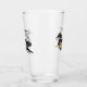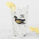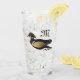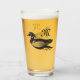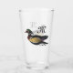 Um lindo pato de madeira nadando. A ilustração é feita do lado com uma onda de água negra das penas da cauda.