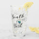 Bandeira do Uist do Sul em um coração, com fonte escrita, vidro de cerveja.