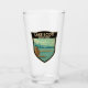 Trabalho de arte do Lago Scott State Park em um design de crachá. O parque também conhecido como Scott State Park, rodeia o lago Scott, um lago água fresca alimentado por primavera.