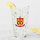 Copo de Vidro com casaco de braços da cidade de Rua Paul, Minnesota; emblema com três faixas horizontais de azul e amarelo com emblema vermelho no centro