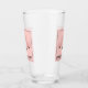 Vidro de bebendo personalizado com um desenho de um rosto de porco rosa giro. Vestindo uma gravata preta de arco. Levantado pelos cascos pretos dele e a mijar em ti. Desenho bonito e caprichoso. Coloque um fundo cor-de-rosa com alguns corações desbotados aqui e ali.