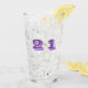Feliz Aniversário com design de Nome e Idade apresenta a frase, "FELIZ ANIVERSÁRIO" em grande texto divertido cercado por confetti. Logo abaixo, é mostrado o nome que você fornece em um texto colorido e roxo. O lado oposto apresenta a idade fornecida em texto roxo e em negrito.