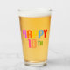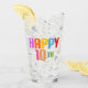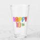 Texto colorido dizendo: "Feliz 10º", é claro que seu filho não vai ser cerveja de bebendo no seu décimo aniversário, mas o copo também pode ser usado para refrigerantes.