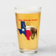 Um copo de pinta que mostra corajosamente o Fort Worth Cattle Drive, junto com as cores da bandeira do Texas. Uma lembrança de uma visita ao Texas.