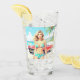 Retrato de uma garota encantadora em uma bela praia tropical com sol e mar, e um carro vermelho clássico, que enquadra o panorama brilhante com cores vibrantes e brilhantes do verão.