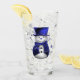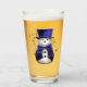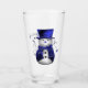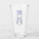 Um copo azul de Natal bonito com a figura de um boneco de neve, vestido formalmente com casaco de veludo azul e chapéu de cima. Ele tem botões pretos brilhantes, arcos e estrelas pendurados em seu chapéu. Este copo daria um belo presente de Natal, ou uma adição muito festiva à sua própria casa para as férias desta temporada.