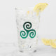 Símbolo verde Triskele. O símbolo Triskele ou Triskelion é constituído por três espirais interpressas ou três braços como se estivesse a sair do seu centro. Esse símbolo celta de movimento ou ação representa os três mundos: celeste, físico e espiritual.