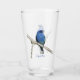 Uma fotografia de um brilhante "Indígo Bunting" azul adorna este vidro de bebendo personalizável!