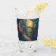 Vidro de bebendo artístico apresenta uma imagem de arte digital gerada por IA de um portão mágico de jardim florestal com raios solares em segundo plano.
