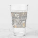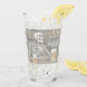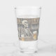 A drinking glass with humor and a vintage look, there is a skeleton having just one more beer before heading home.