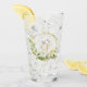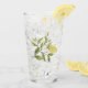 A frente do vidro apresenta um design geométrico com limões e verde e espaço para o seu começo. As costas combinam a design com limões e verde.