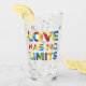 Este design apresenta a frase "O amor não tem limites" formada em cores coloridas do arco-íris.