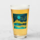 design de paisagem da montanha abstrato em tons de ouro, ciano e azul em tons negros, com um nascer, estrelas e pássaros.