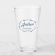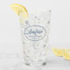 Vidro de cerveja para o padrinho de casamento de casamento que mostra seu nome impresso em uma trendy, azul empoeirado, dentro de guião estilizado com cor azul empoeirada borda oval junto com a data do ano de casamento. Uma ideia de excelente para uma despedida de solteiro! Personalize seu copo de cerveja editando e substituindo nome e data pelo seu. Disponível em muitos esquemas populares de cor de casamento.