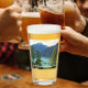 Vidro de cerveja e outras bebidas frias que apresenta uma foto cênica das águas verdes esmeraldas do lago Diablo e paisagens montanhosas no Parque Nacional, Washington. Faz um viagem de souvenir excelente!