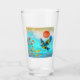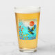 Este lindo design retrata um pássaro azul e dourado fazendo uma aterrissagem em uma árvore ouro com um belo céu de muitas cores azuis e um sol laranja ousado.