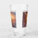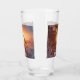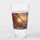 Vista do pôr do sol sobre a paisagem de inverno com o mar e coberta de pinheiros de neve contra a dramática luz da noite. Costa marítima de neve