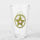 Um desenho de fatias de pizzas feitas para parecer um pentáculo com pão de alho fazer o círculo.
