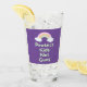 Vidro bebendo com texto "Proteger Crianças Não Armas" no estilo de letra verde da casa da moeda e gráfico arco-íris pastel em fundo roxo.