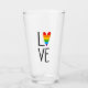 Este design divertido mostra a palavra amor com um coração giro e arco-íris.