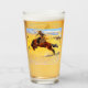 Vidro Tumbler com a pintura a óleo de Frederic Remington, Manhã Fria na Faixa (1904). Um vaqueiro anda a cavalo marrom e ambunicioso. Um presente de excelente para amantes de cavalos e para o Velho Oeste.