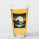 Uma paisagem abstrato de uma enorme superlua em uma cena de lago montanhês com um bando de pássaros em texturas ousadas e tons escuros de marrom, bege, bronzeado, azul, ciano e preto.