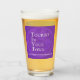 Um copo especial de pinta com uma foto da linha do horizonte de Nova Iorque à noite e o logotipo Tourist em sua cidade no verso.