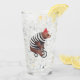 Características deste design uma ilustração da aguarela de um urso em uma bicicleta que veste uma camisola listrada e um chapéu vermelho.