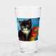 Vidro Tumbler com um lindo gato de smoking Van Gogh! Esta pequena gatinho se posiciona ao lado de uma cesta de flores laranja sobre uma mesa vermelha. Um presente de excelente para amantes de gatos e colecionadores de arte holandeses!