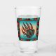 Este é um único "Um dos tipos" de vidro de cerveja de urso tribal do sudoeste! Ela apresenta uma tribal americana tribal paw que representa proteção e boa saúde...Em um fundo de Turquesa e Sunset Laranja.. cercado por uma Turquesa Sudoeste, Borda Laranja e Negra! Este é um Design de Arte Gráfica Original do Artista Kerry Miller.