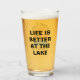 16oz Pint Glass com o logotipo Sunset Lake e o texto "A vida é melhor no lago"