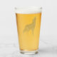 Esta design é o contorno de um lobo uivante com um gradiente de cor azul a bege e a silhueta de um dentro de árvore.