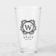 Vidro de cerveja monograma para o seu melhor homem com a sua dentro inicial, uma armação redonda decorada com folhas acima do nome e papel de festa de casamento.