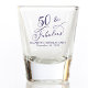Elegant and chic 50th birthday party shot glass. "50 & Fabulous" is written in a a stylish purple script and you can personalize with your name and the party date.