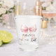Celebrate in style with this elegant bachelorette party shot glass. The design features a delicate blush pink colored bow accented with pearls. It makes a perfect commemorative gift for the bride-to-be to use during her bridal shower or girls' night out.