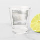 Um copo de shot com uma foto da cachoeira em Shidler, Oklahoma chamada Cachoeira de Shidler.