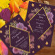 Casamento romântico da dália de outono: Folhas de outono acompanham quadro floral em vários tons roxos