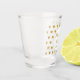Futuro Sra. Chá de panela Dourada Hearts Shot Glass com padrão de corações quentes em ouro em fundo branco.